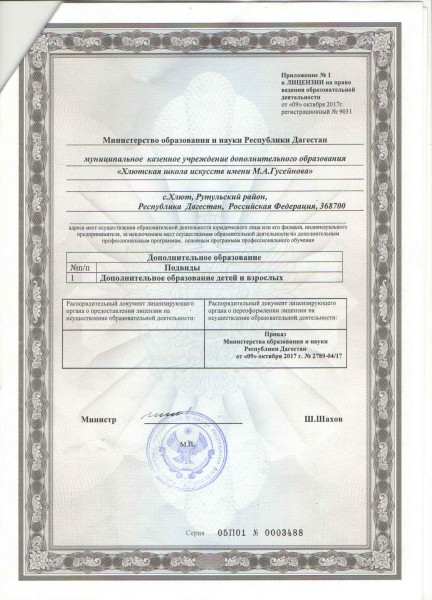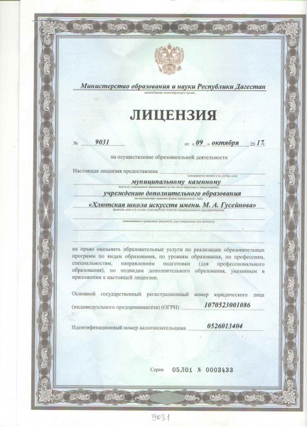 Полное наименование образовательной организации* Муниципальное казенное учреждение дополнительного образования "Хлютская школа искусств имени М.А.Гусейнова"