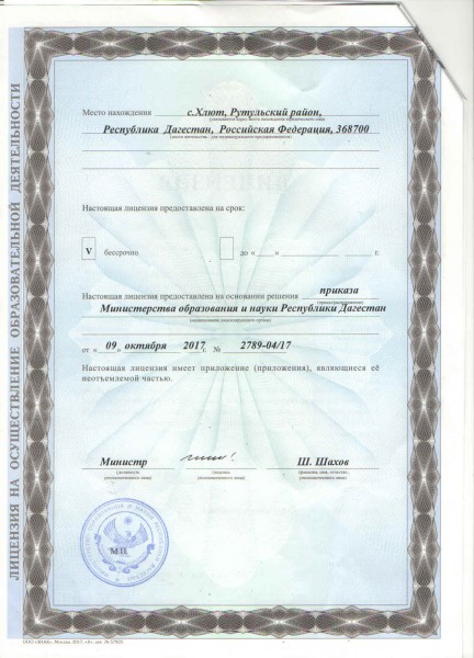 Адрес местонахождения образовательной организации* 368700, республика Дагестан, Рутульский район, село Хлют